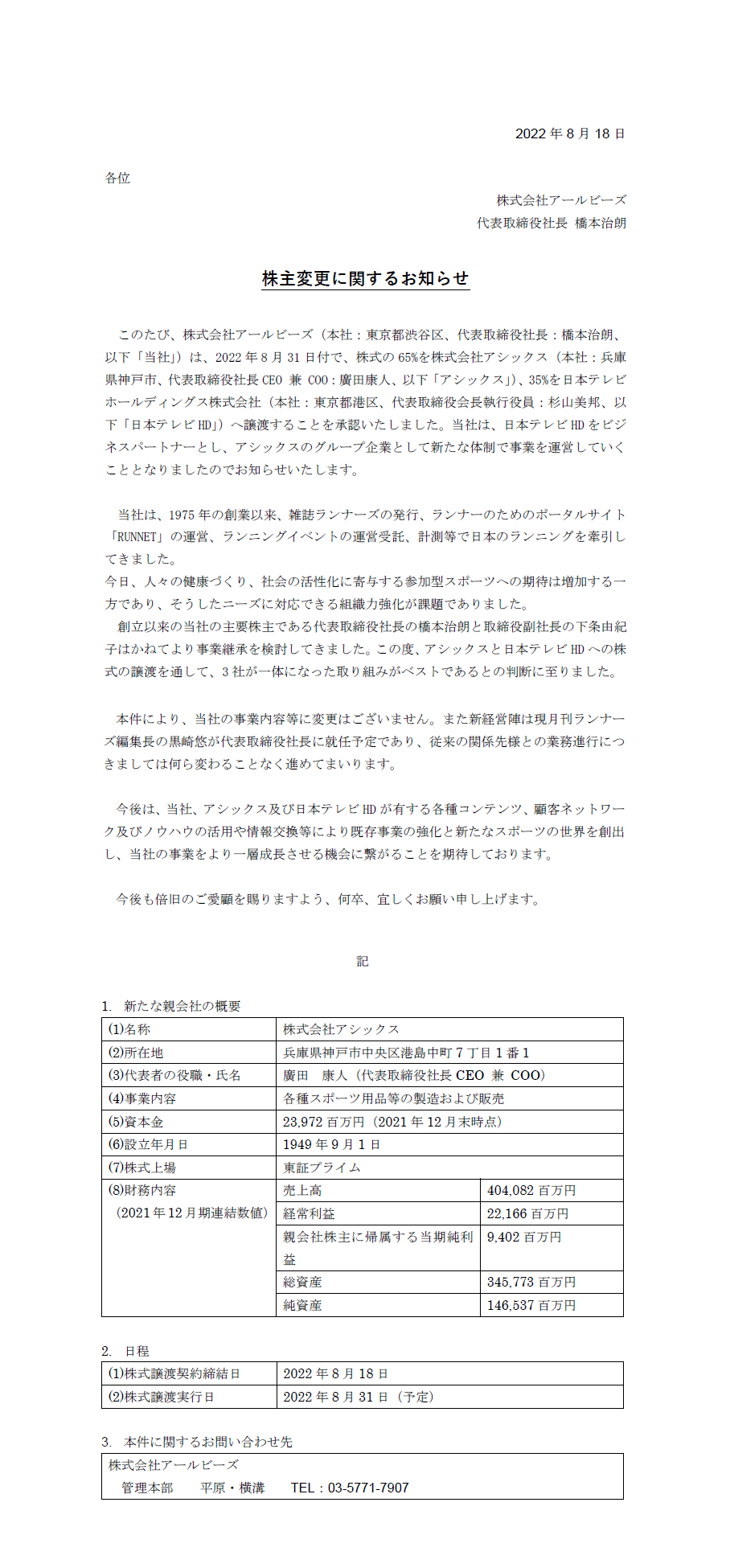 株式譲渡に関するQ&A:https://stg.runners.co.jp/topics/newsrelease/2022/09/01/1740/